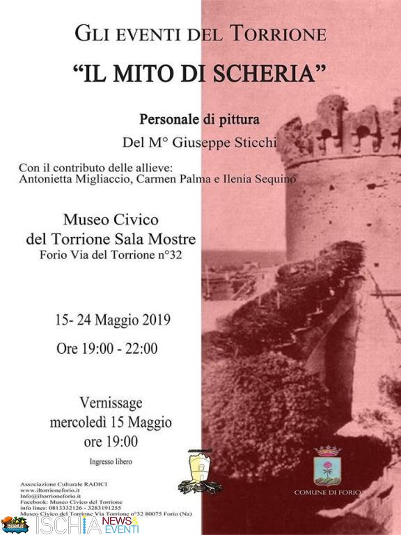 L’Associazione Culturale Radici, lieta di ospitare nella storica torre di Giovanni Maltese e Jane Fanny Fayrer un evento di così notevole spessore, ringrazia il M° Sticchi (che per l’occasione si avvalso della collaborazione di Antonietta Migliaccio, Carmen Palma e Ilenia Sequino) per aver scelto l’antico baluardo anti-saraceno, che occupa una posizione strategica privilegiata per poter ammirare lo svolgimento della Scheria Cup 24/2019, ed invita i gentili ospiti e i cortesi residenti a visitare fin dal vernissage di mercoledì 15 alle ore 19.00 l’esposizione pittorica. Ricorda inoltre che il Museo Civico Giovanni Maltese è aperto al pubblico tutti i giorni dalle 09.30 alle 12.30 e dalle 17.00 alle 19.00 e che altre notizie e immagini sono alla pagina: http://www.iltorrioneforio.it/fotogallery/mostre-2019/il-mito-di-scheria/
